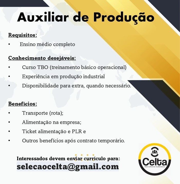 Empresa está selecionando Auxiliar de produção; Envie seu currículo!