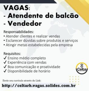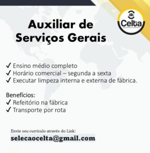 Rh está selecionando Auxiliar de produção, Auxiliar de serviços gerais, Atendente de balcão vendedor; Envie seu currículo!