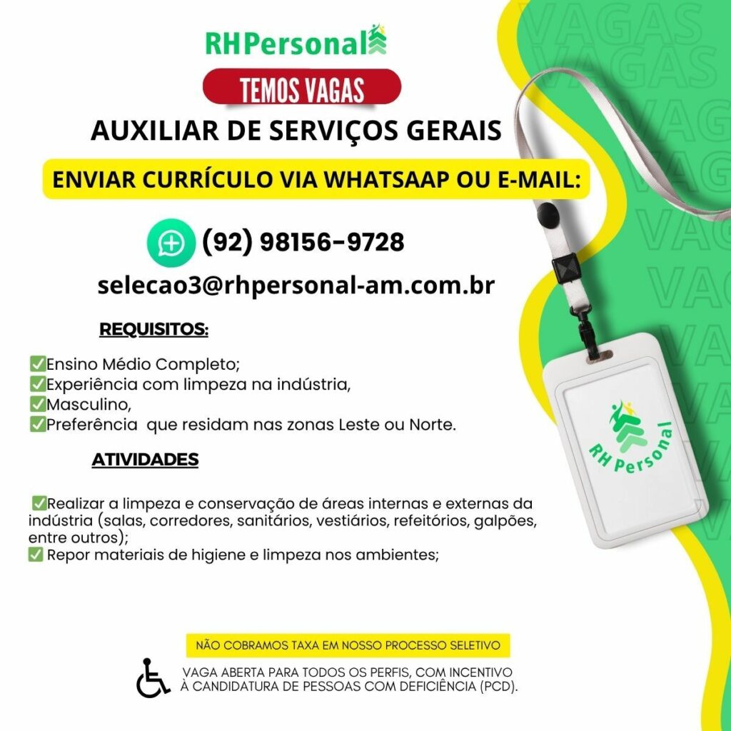 Rh está selecionando Auxiliar de serviços gerais; Envie seu currículo!
