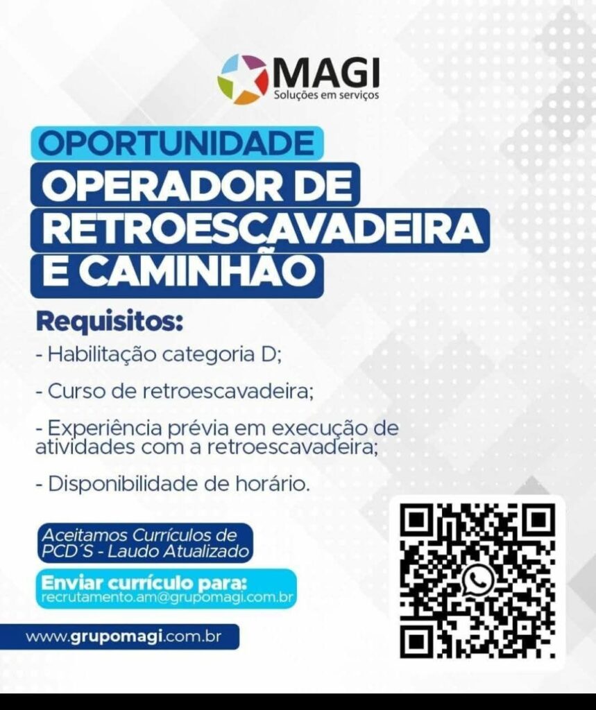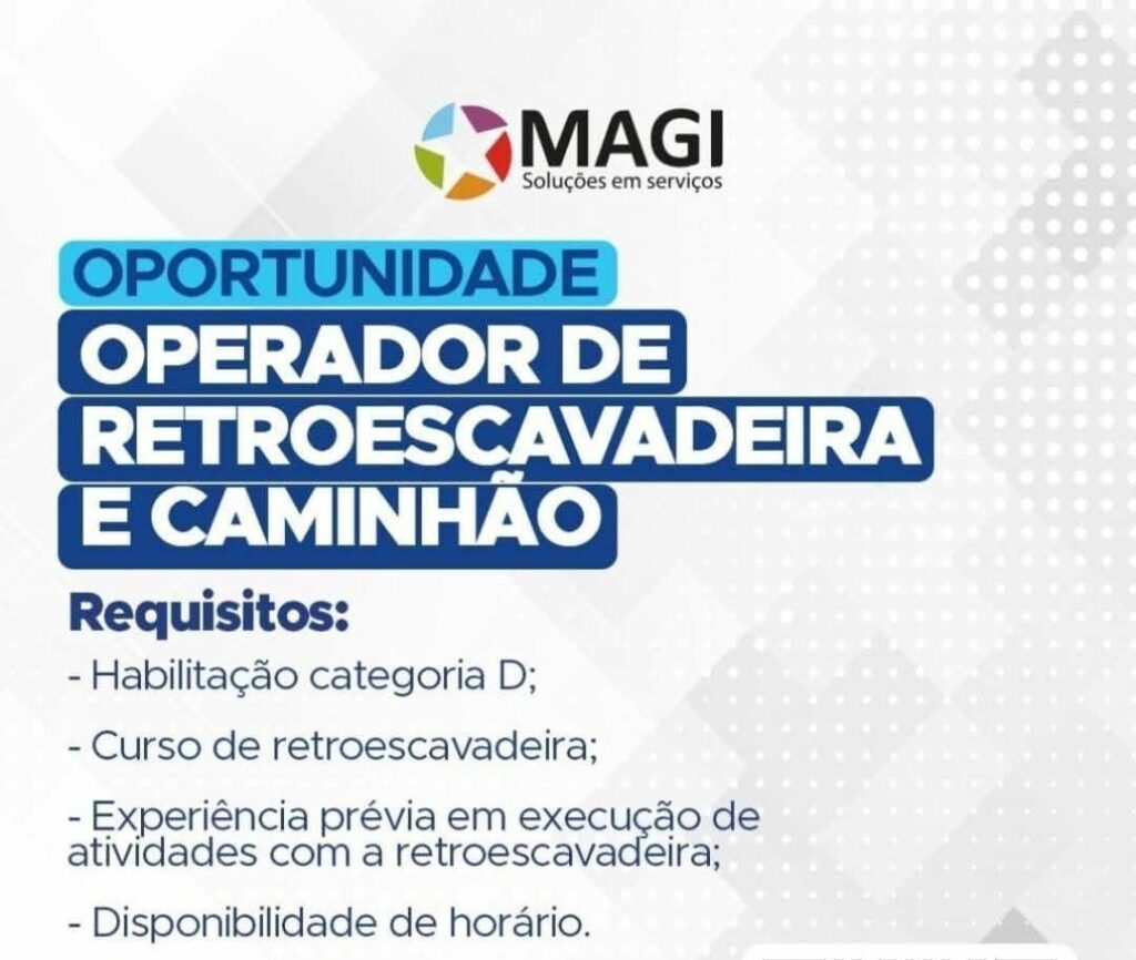 Rh está selecionando Auxiliar Operador de retroescavadeira e caminhão; Envie seu currículo!