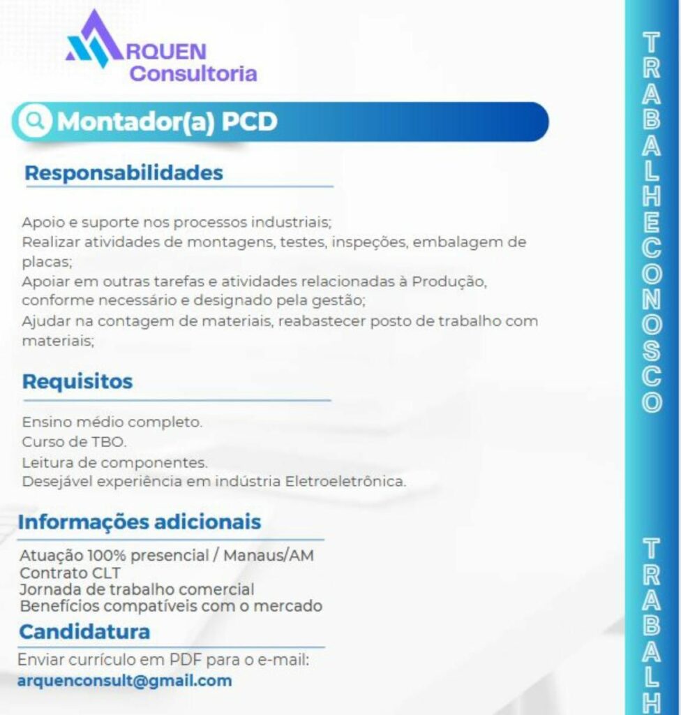 Rh está selecionando Montador (a); Envie seu currículo!