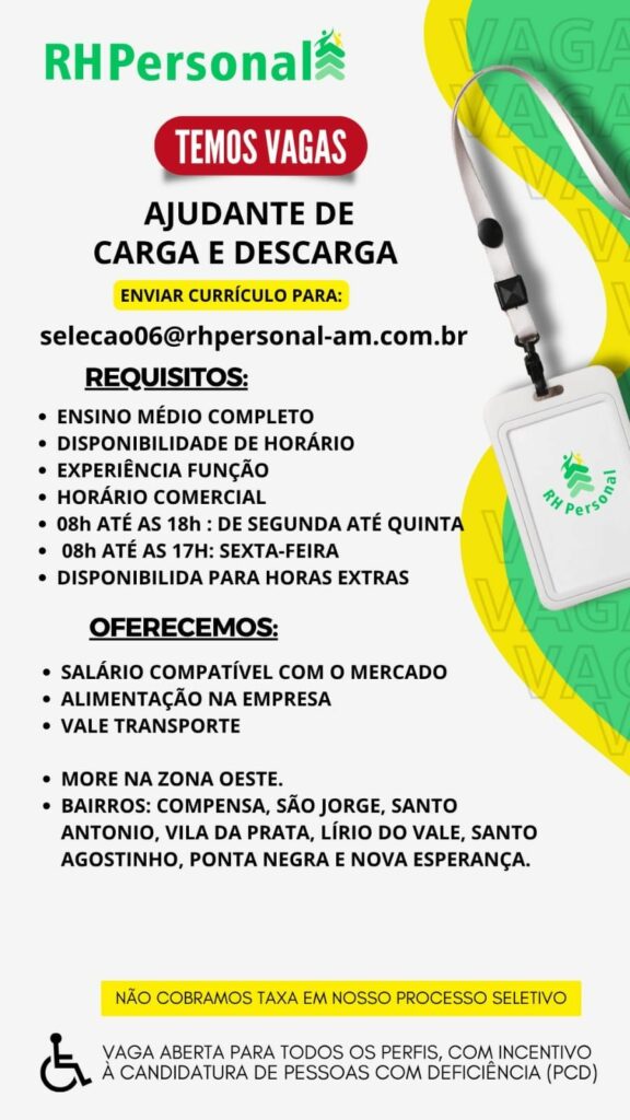 Rh personal seleciona Ajudante de carga e descarga, Auxiliar de logística; Envie seu currículo!