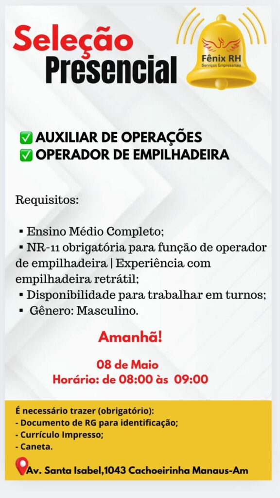 • Hospital Santa Júlia abre vaga para maqueiro em Manaus