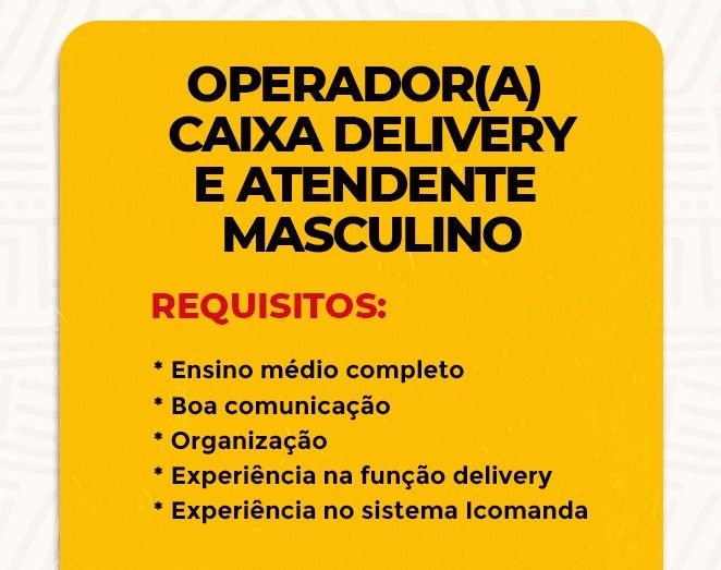 Seleção para Operador (a) caixa delivery, Atendente; Envie seu currículo!