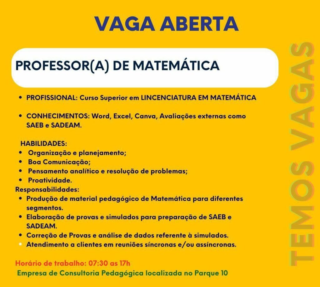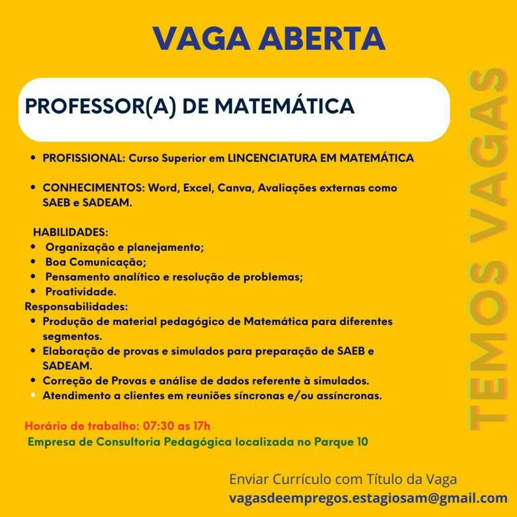 Seleção para Professor (a) de língua portuguesa, Professor (a) de matemática; Envie seu currículo!