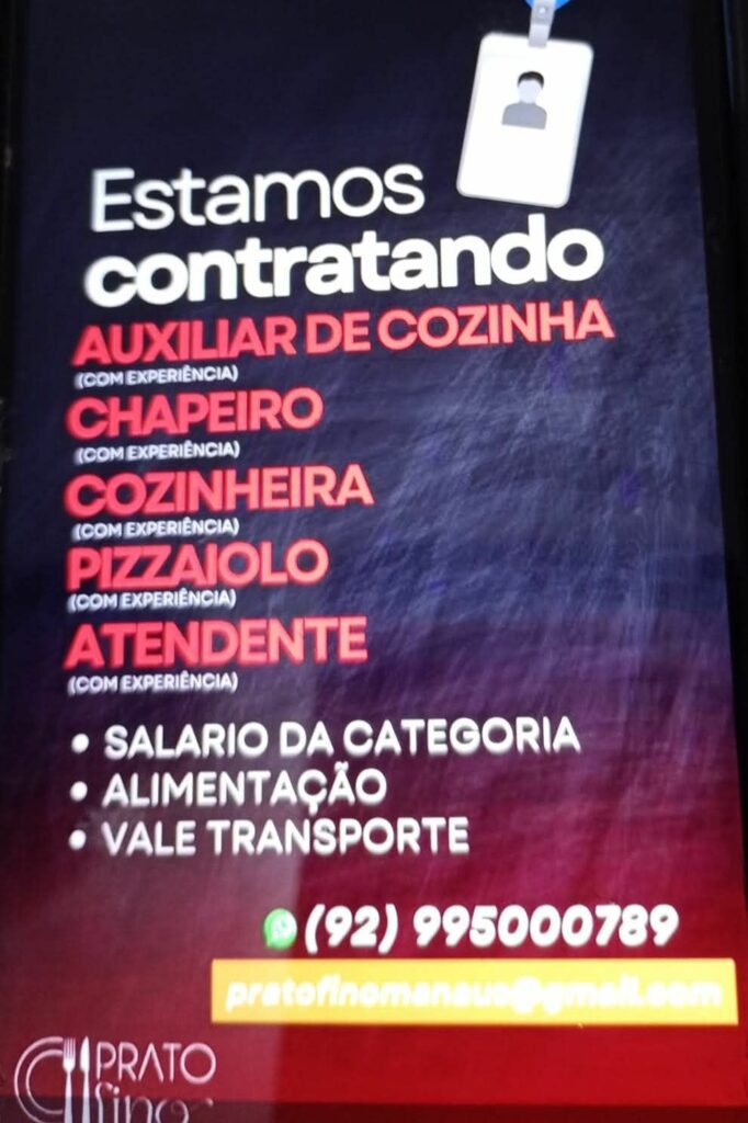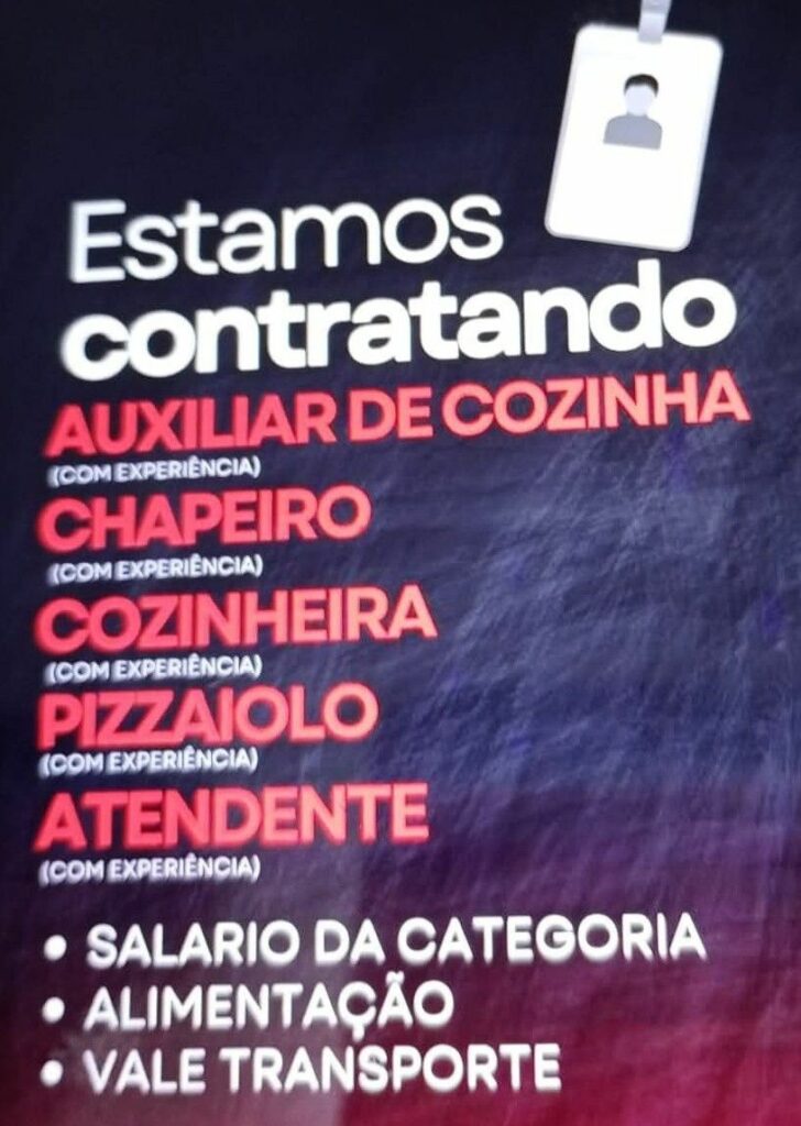 Seleção para seguintes vagas Auxiliar de cozinha, Chapeiro, Cozinheira, Pizzaiolo, Atendente; Envie seu currículo!