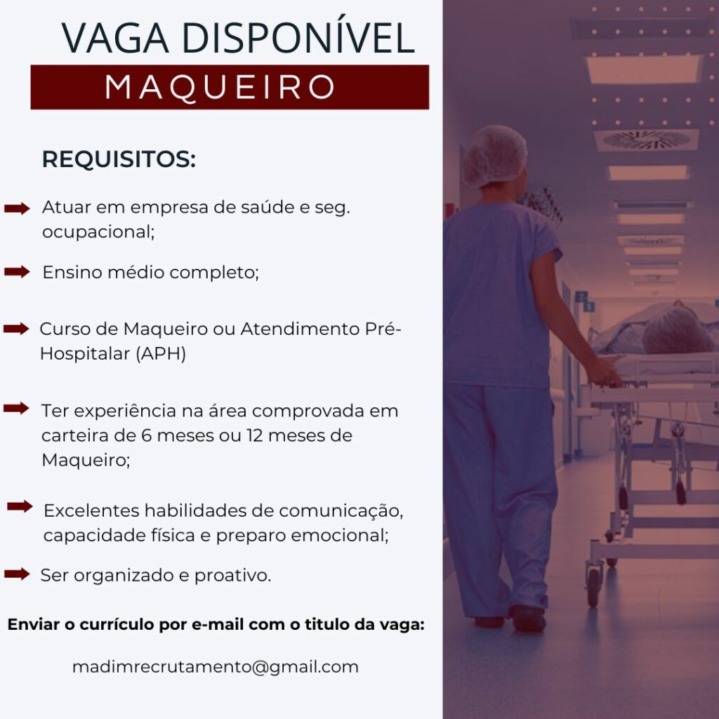 • Hospital Santa Júlia abre vaga para maqueiro em Manaus