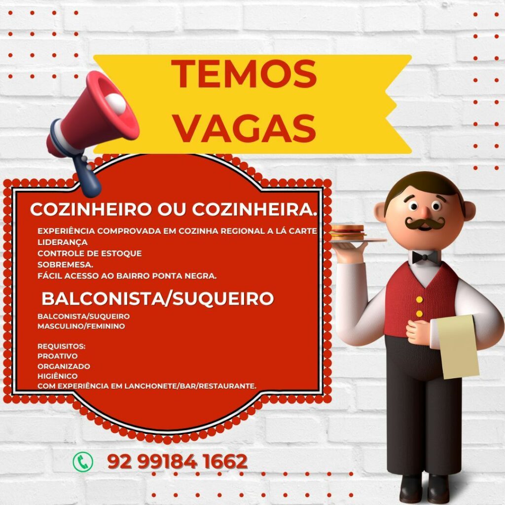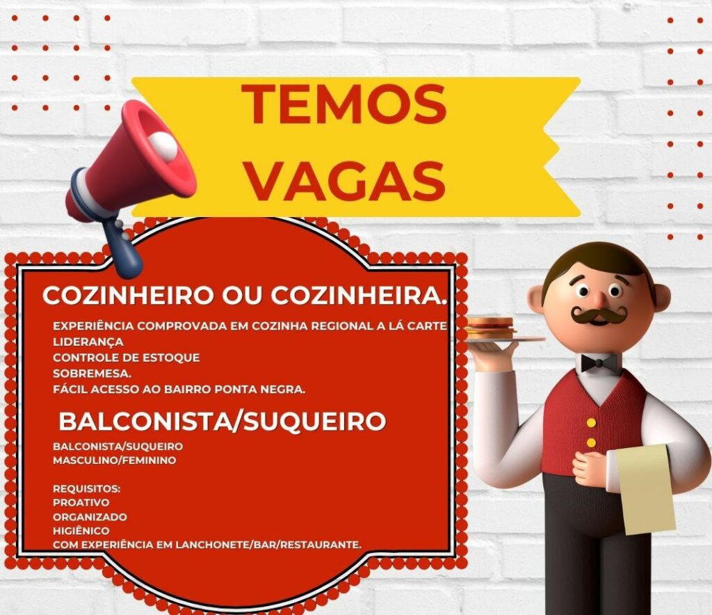 Seleção para seguintes vagas Cozinheiro (a), Balconista / suquista; Envie seu currículo!