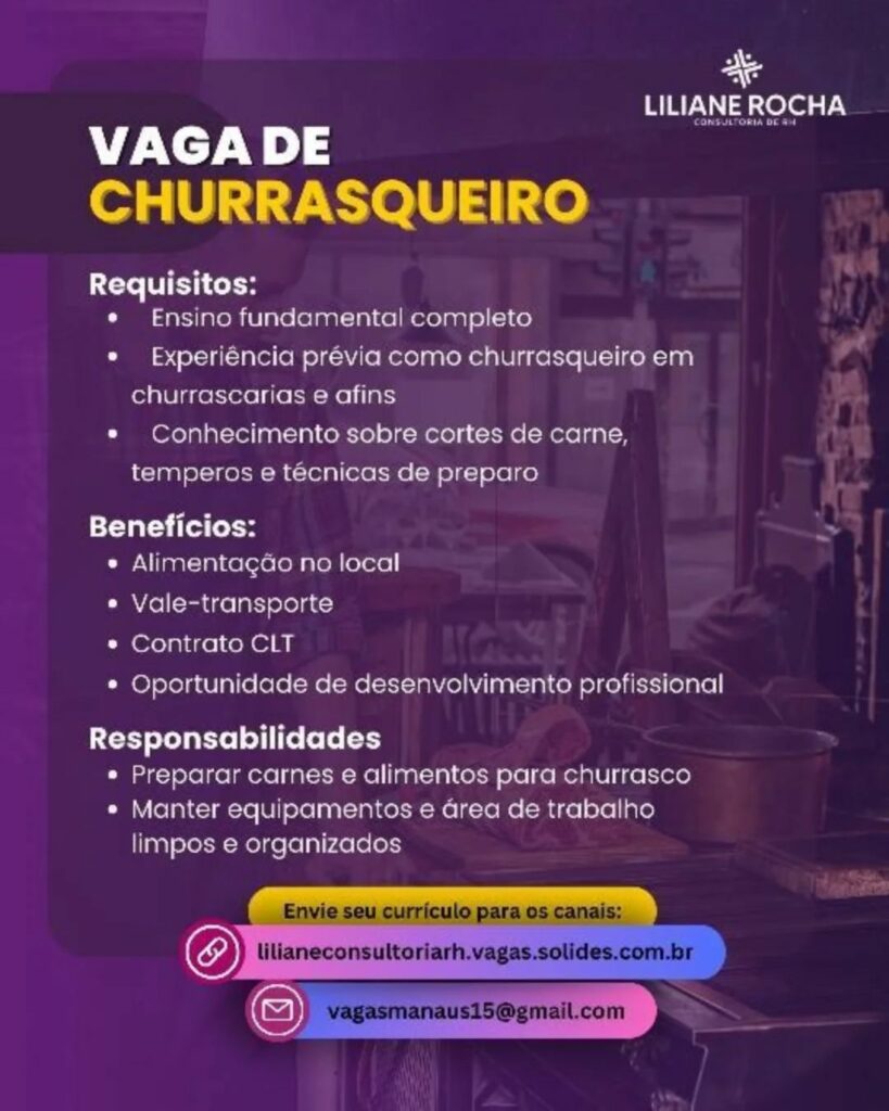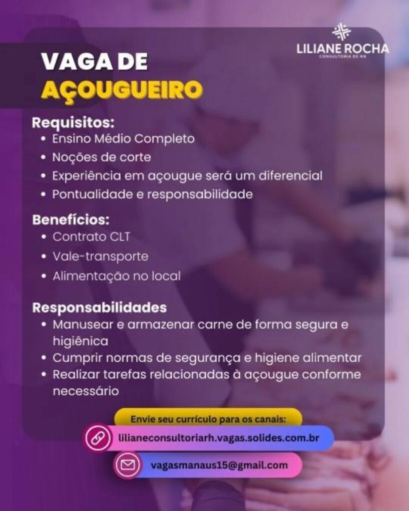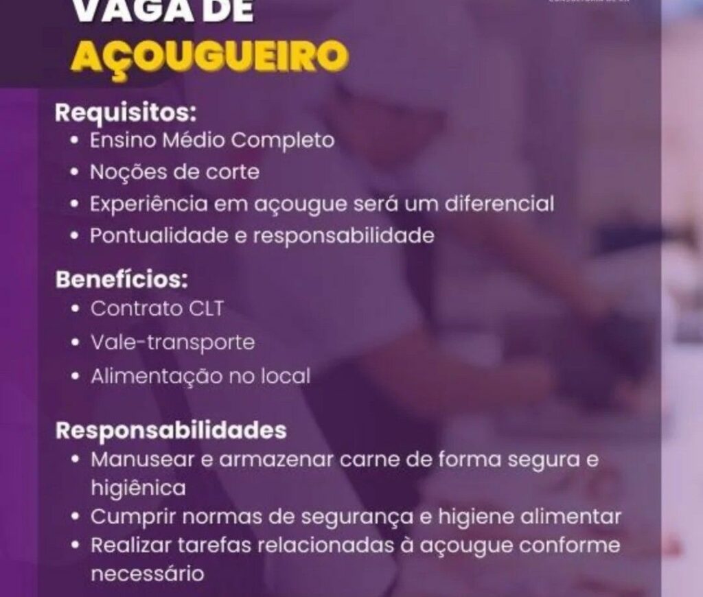 Seleção para seguintes vagas Estagiário em marketing, Auxiliar de cozinha, Motoboy, Motorista, Churrasqueiro, Atendente, Açougueiro; Envie seu currículo!