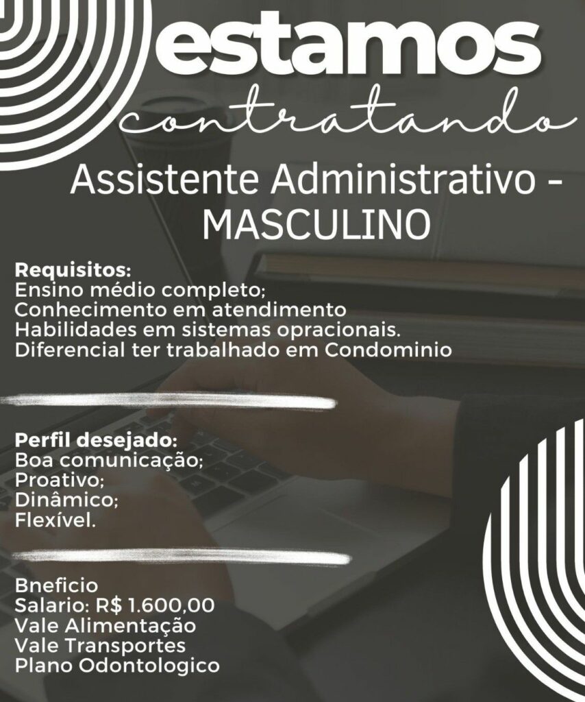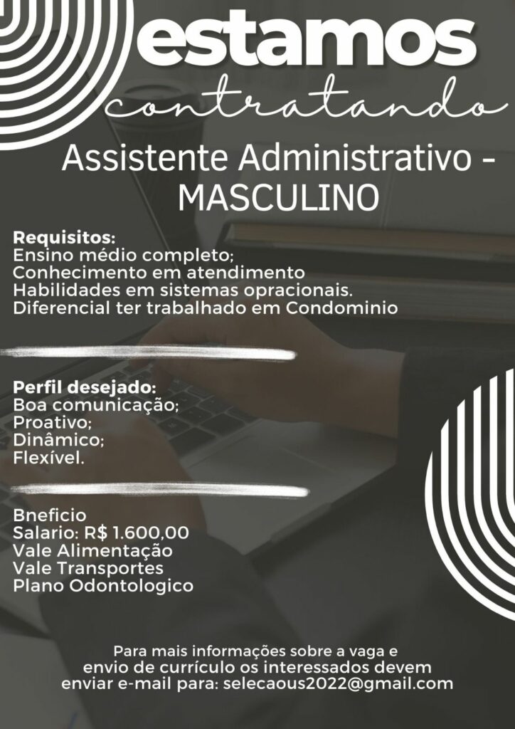 Seleção para vaga de Assistente Administrativo; Envie seu currículo!