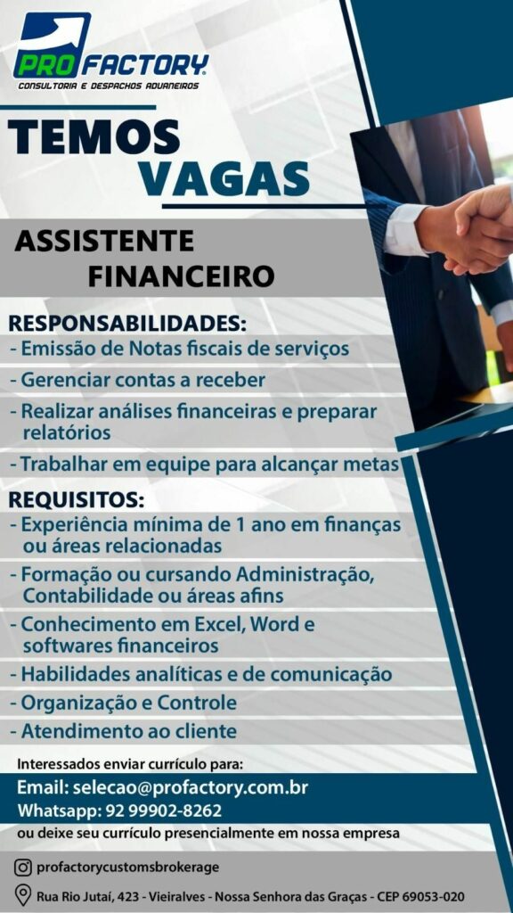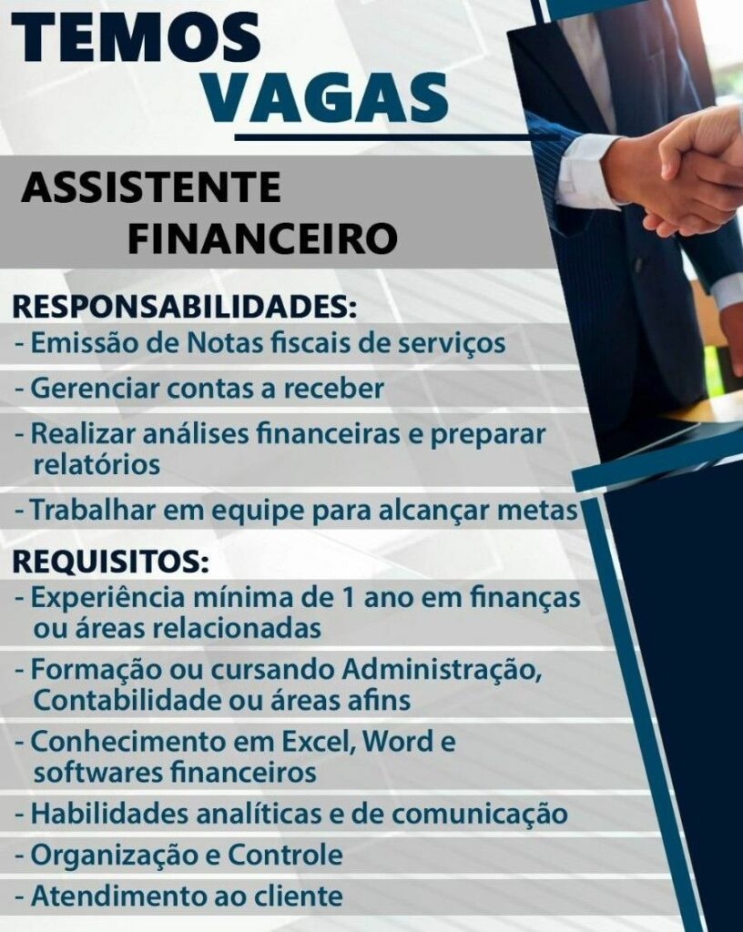 Seleção para vaga de Assistente financeiro; Envie seu currículo!