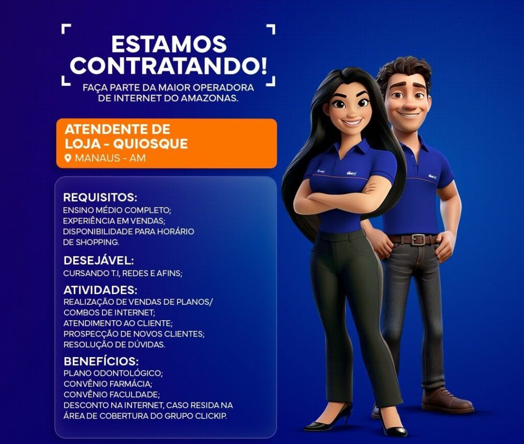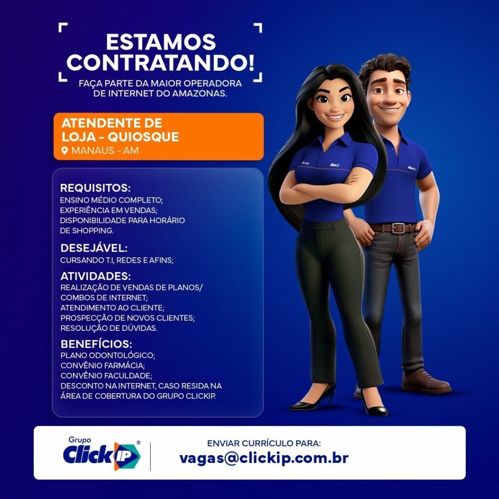 Seleção para vaga de Atendente de loja quiosque; Envie seu currículo!