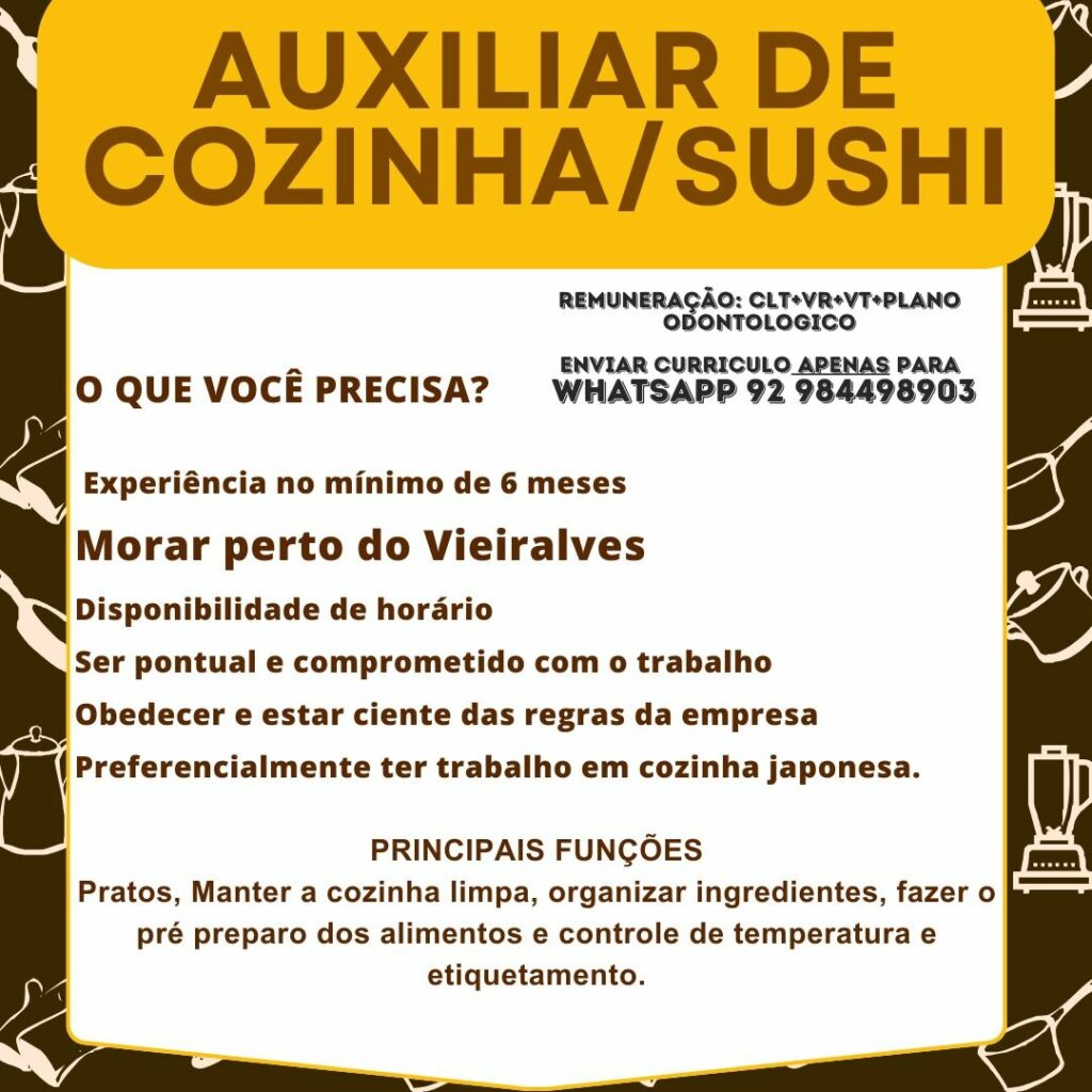 Seleção para vaga de Auxiliar de cozinha sushi; Envie seu currículo!