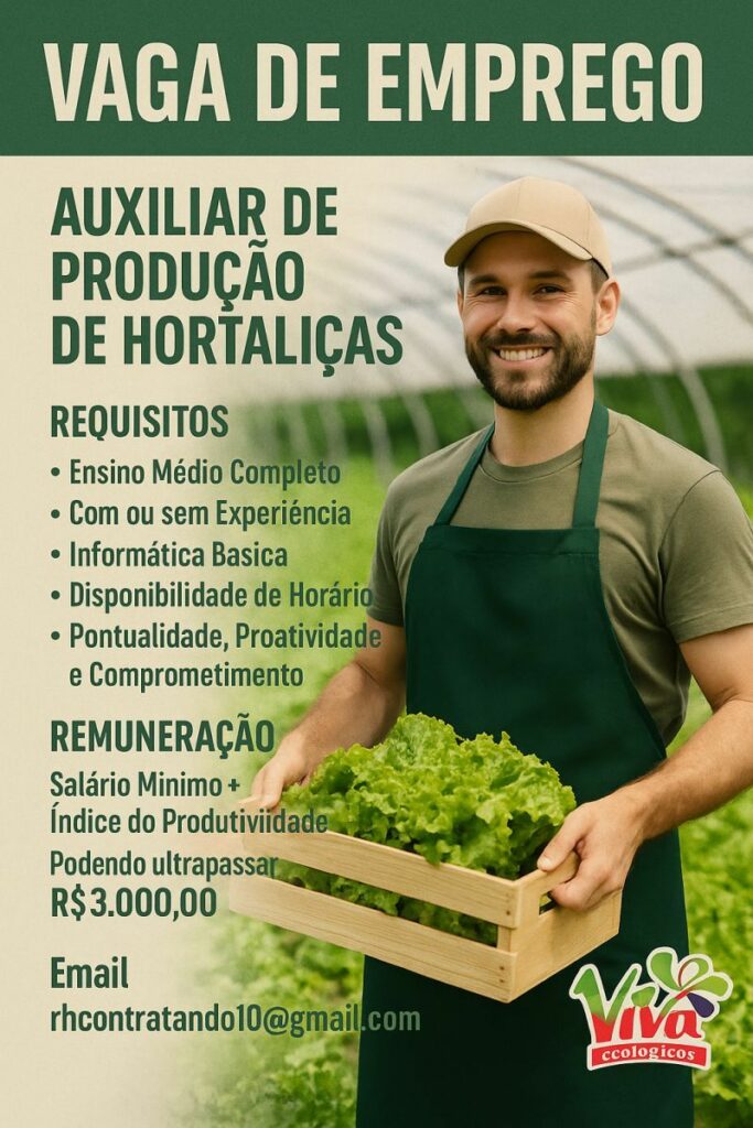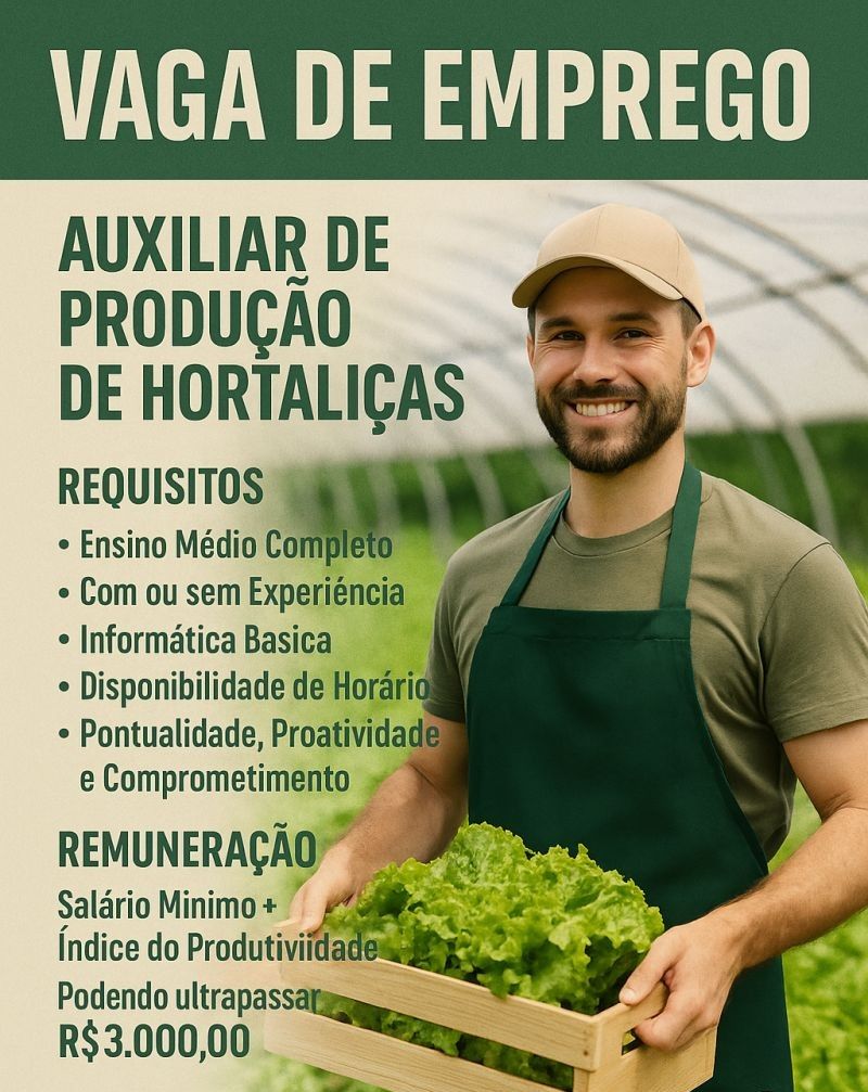 Seleção para vaga de Auxiliar de produção de hortaliças; Envie seu currículo!