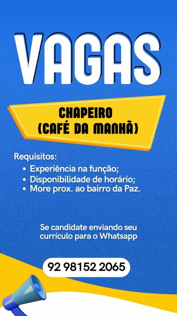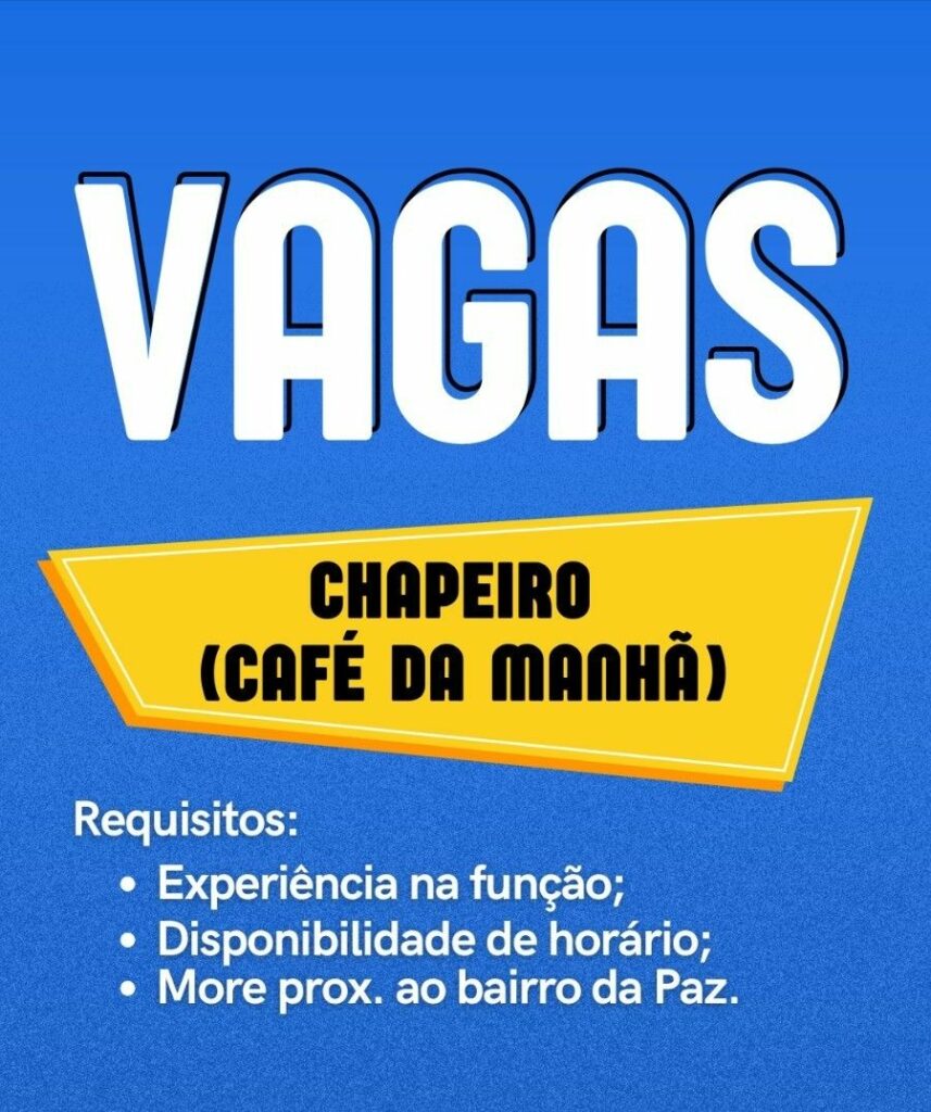 Seleção para vaga de Chapeiro; Envie seu currículo!