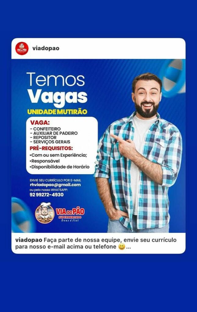 Seleção para vaga de Confeiteiro, Auxiliar de Padeiro, Repositor, Serviços Gerais; Envie seu currículo!