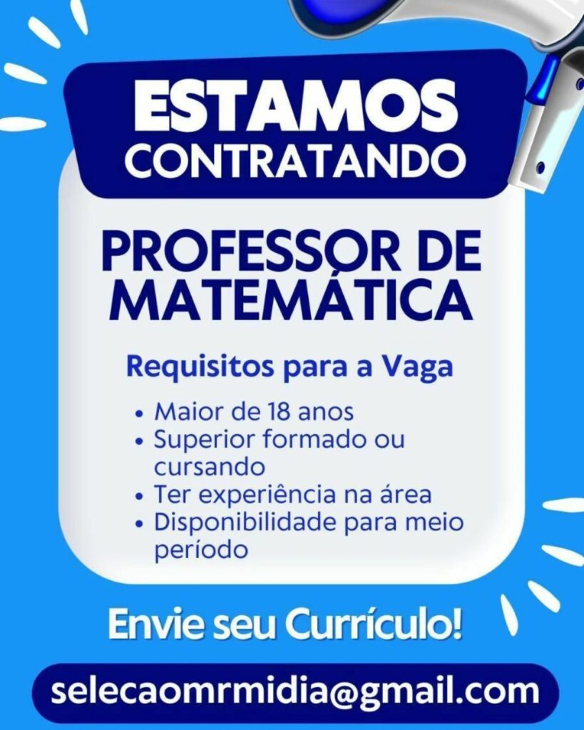 Seleção para vaga de Professor de matemática; Envie seu currículo!