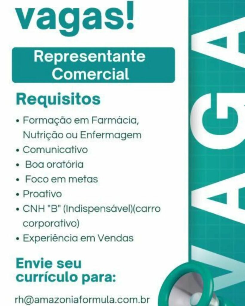 Seleção para vaga de Representante comercial; Envie seu currículo!