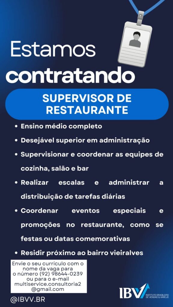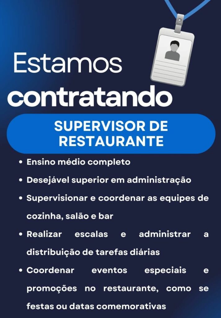 Seleção para vaga de Supervisor de restaurante; Envie seu currículo!