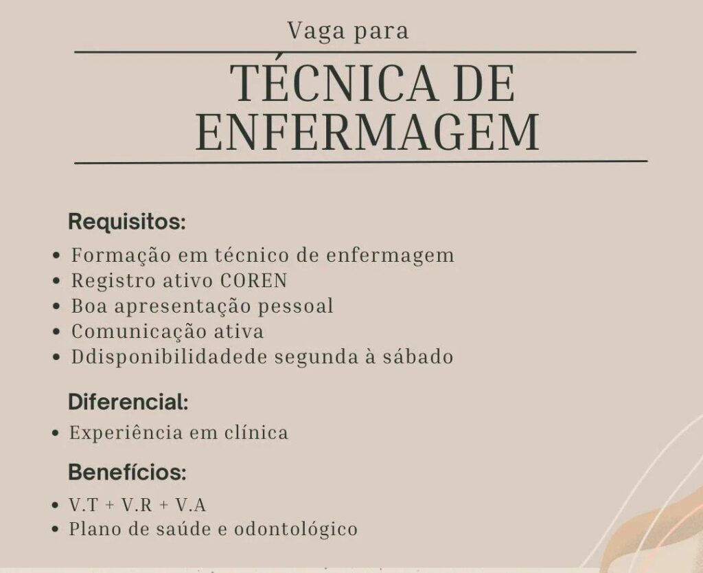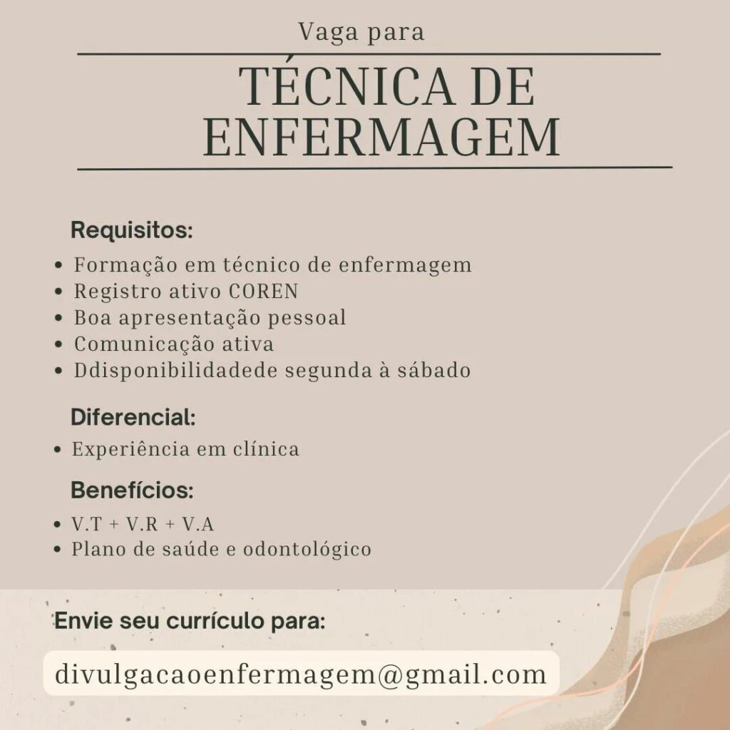 Seleção para vaga de Técnica de enfermagem; Envie seu currículo!