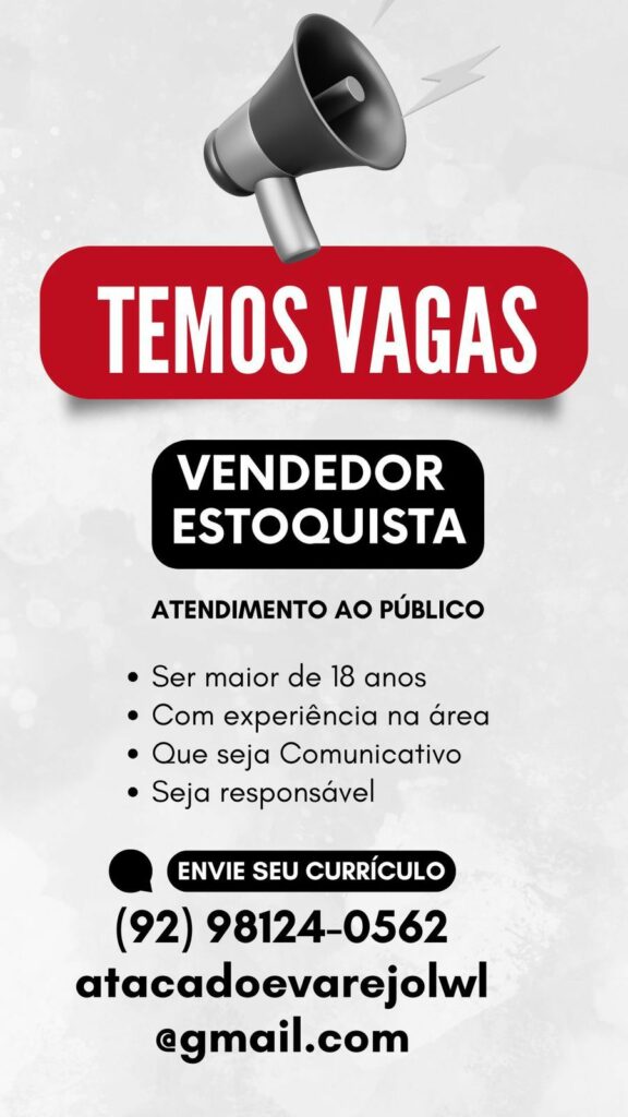 Seleção para vaga de Vendedor Estoquista; Envie seu currículo!