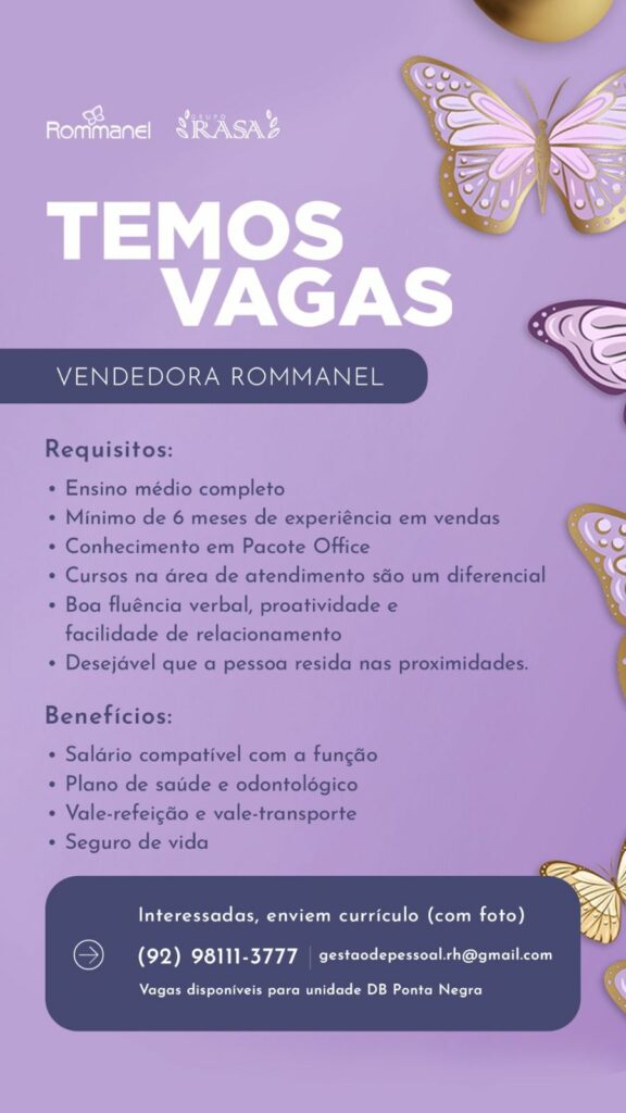 Seleção para vaga de Vendedora Rommanel; Envie seu currículo!