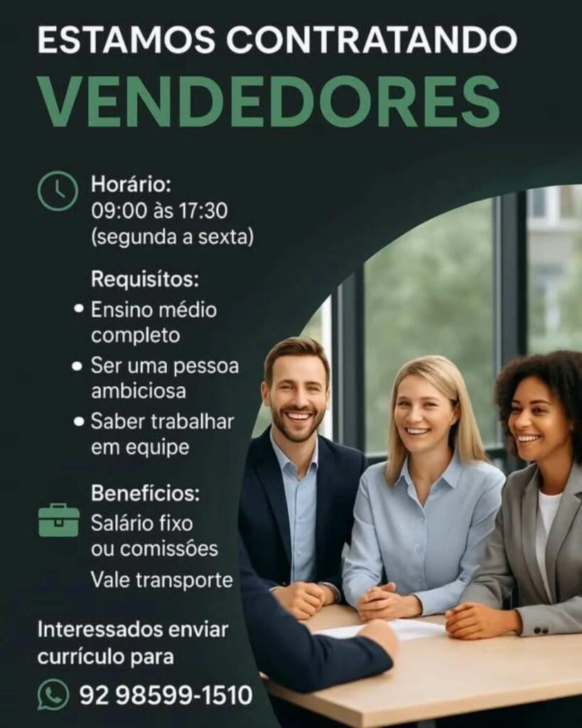 Seleção para vaga de Vendedores; Envie seu currículo!