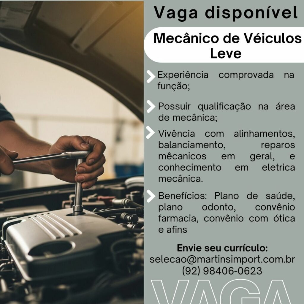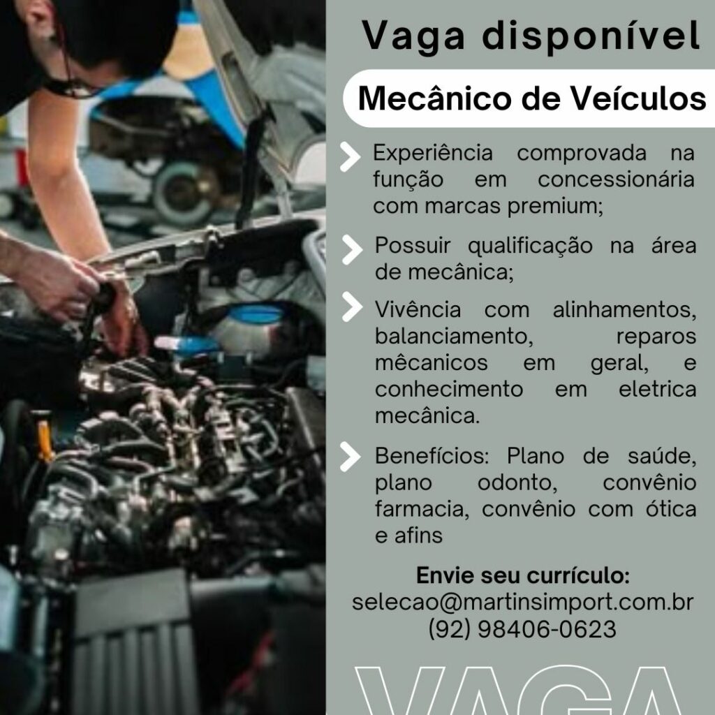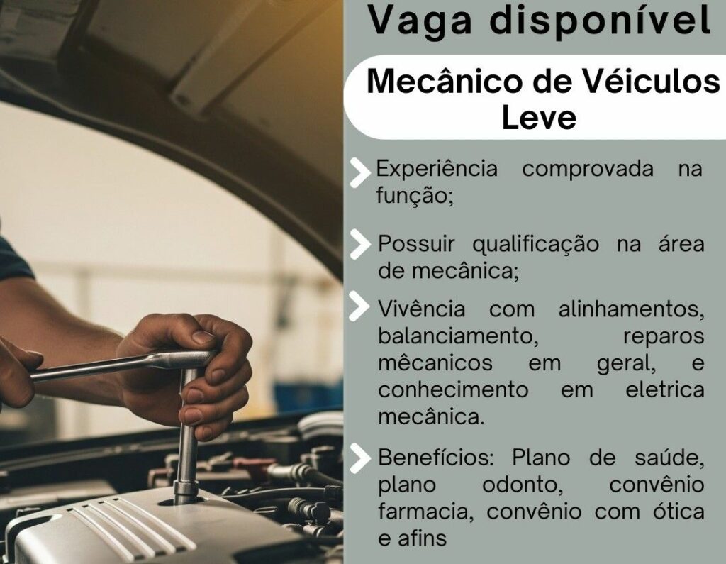 Seleção para vagas de Mecânico de veículos, Mecânico de veículos leves; Envie seu currículo!