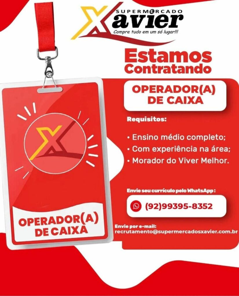 Supermercado Xavier seleciona Operador (a) de caixa; Envie seu currículo!