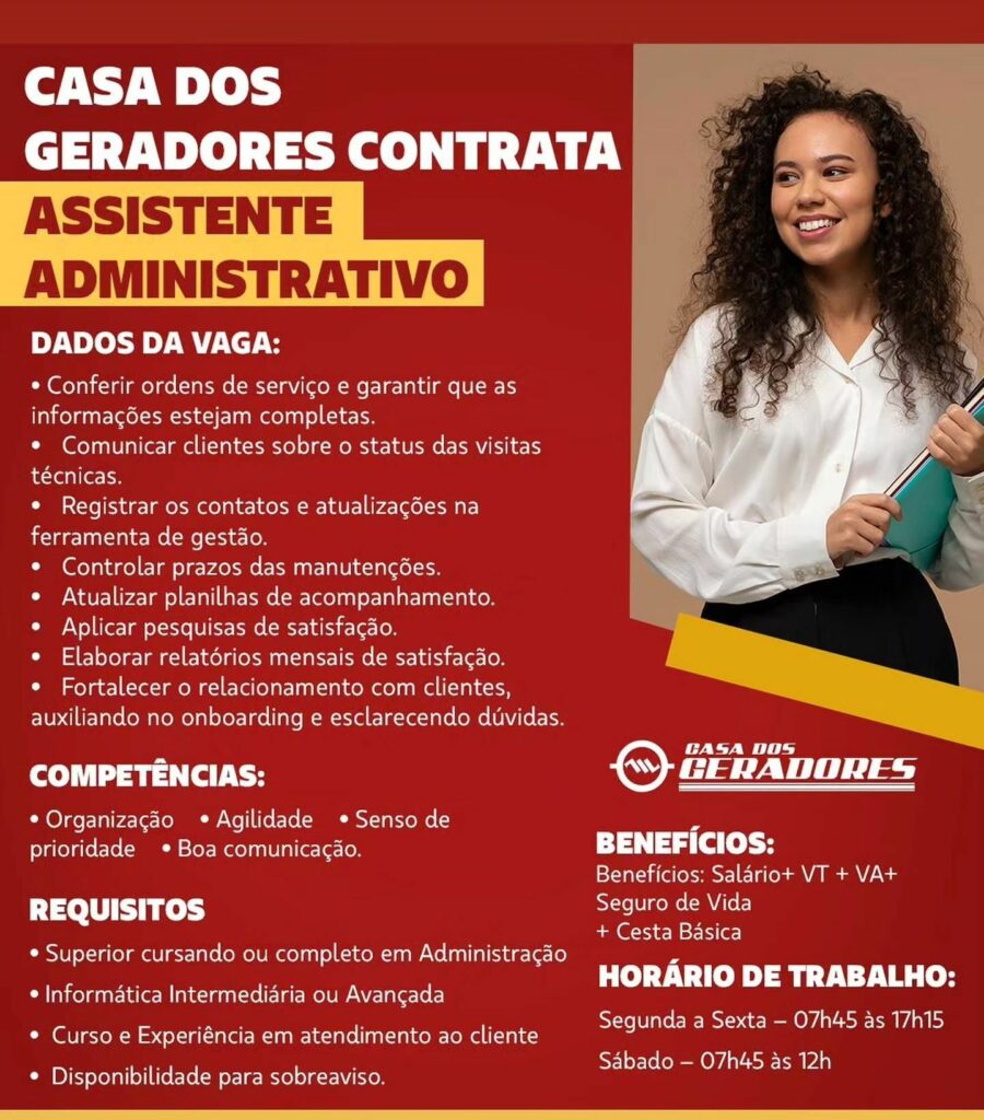 Casa dos geradores seleciona Assistente administrativo; Envie seu currículo!