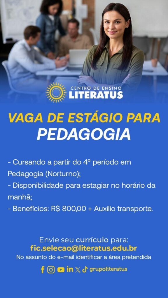 Centro de ensino Literatus está selecionando para Pedagogia; Envie seu currículo!