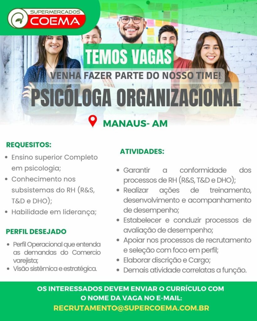 Coema Supermercado está selecionando Peixeiro, Conferente, Psicóloga organizacional; Envie seu currículo!