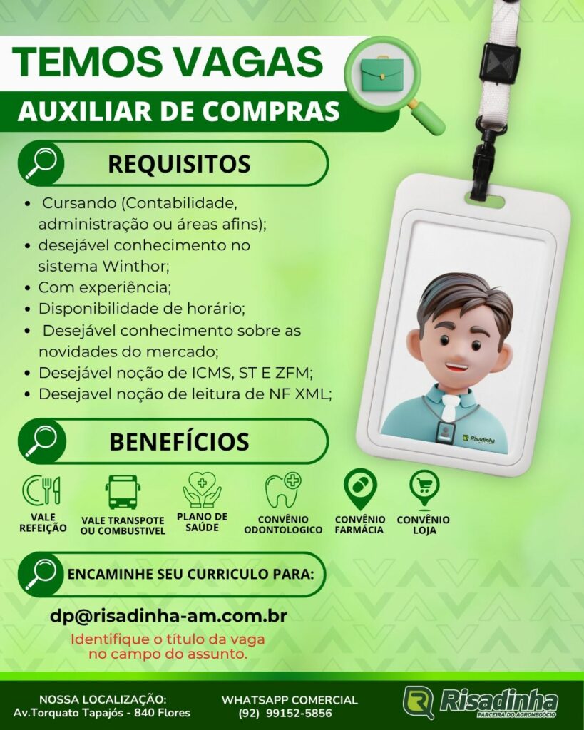 Confira as 06 oportunidades de emprego oferecido pela empresa Comercial Risadinha; Envie seu currículo!