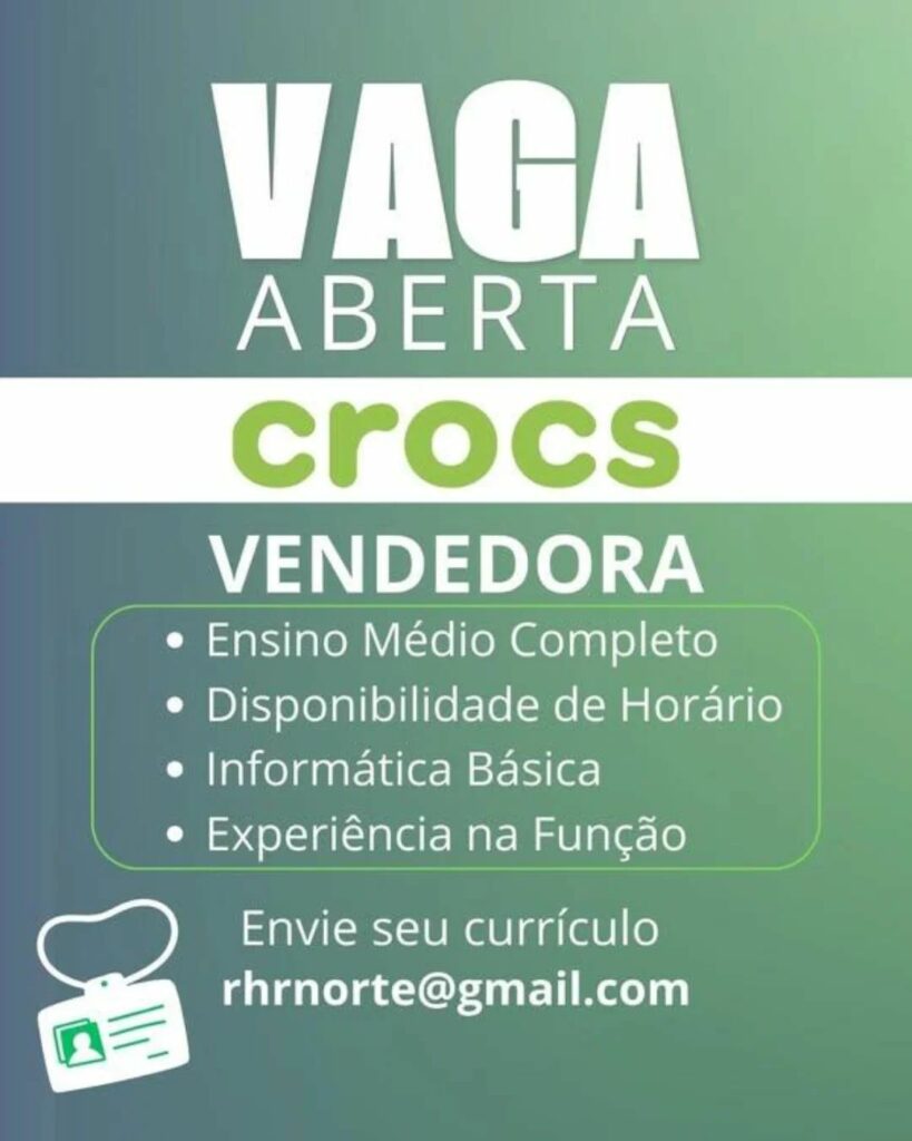 Crocs está selecionando Vendedora; Envie seu currículo!