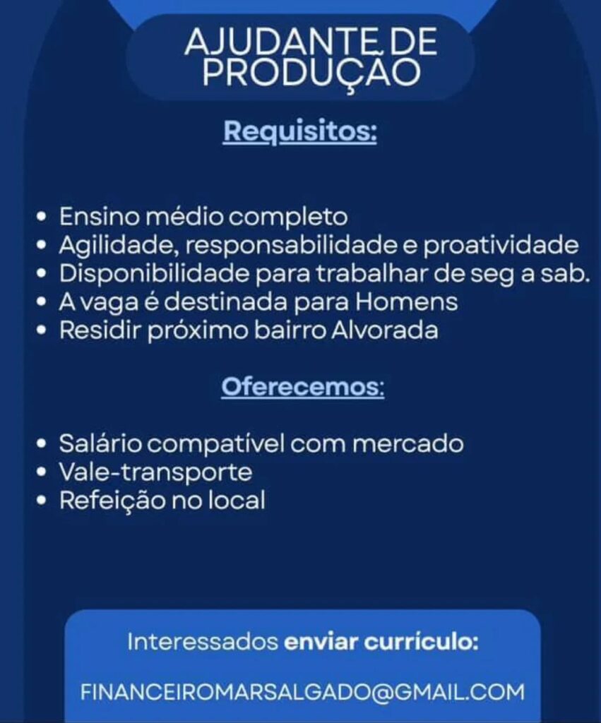 Empresa está selecionando Ajudante de produção; Envie seu currículo!