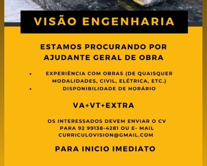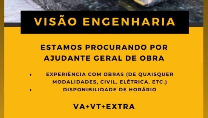 Empresa está selecionando Ajudante geral de obra; Envie seu currículo!