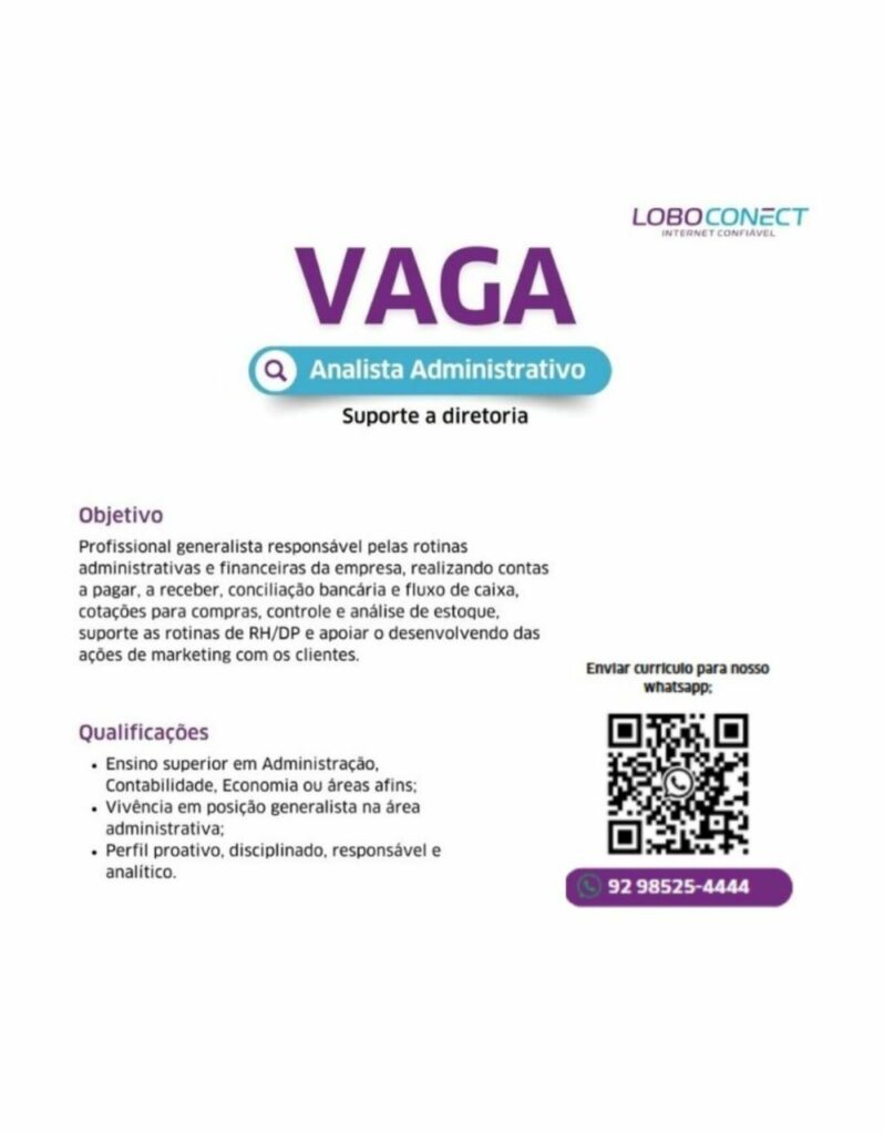 Empresa está selecionando Analista administrativo; Envie seu currículo!