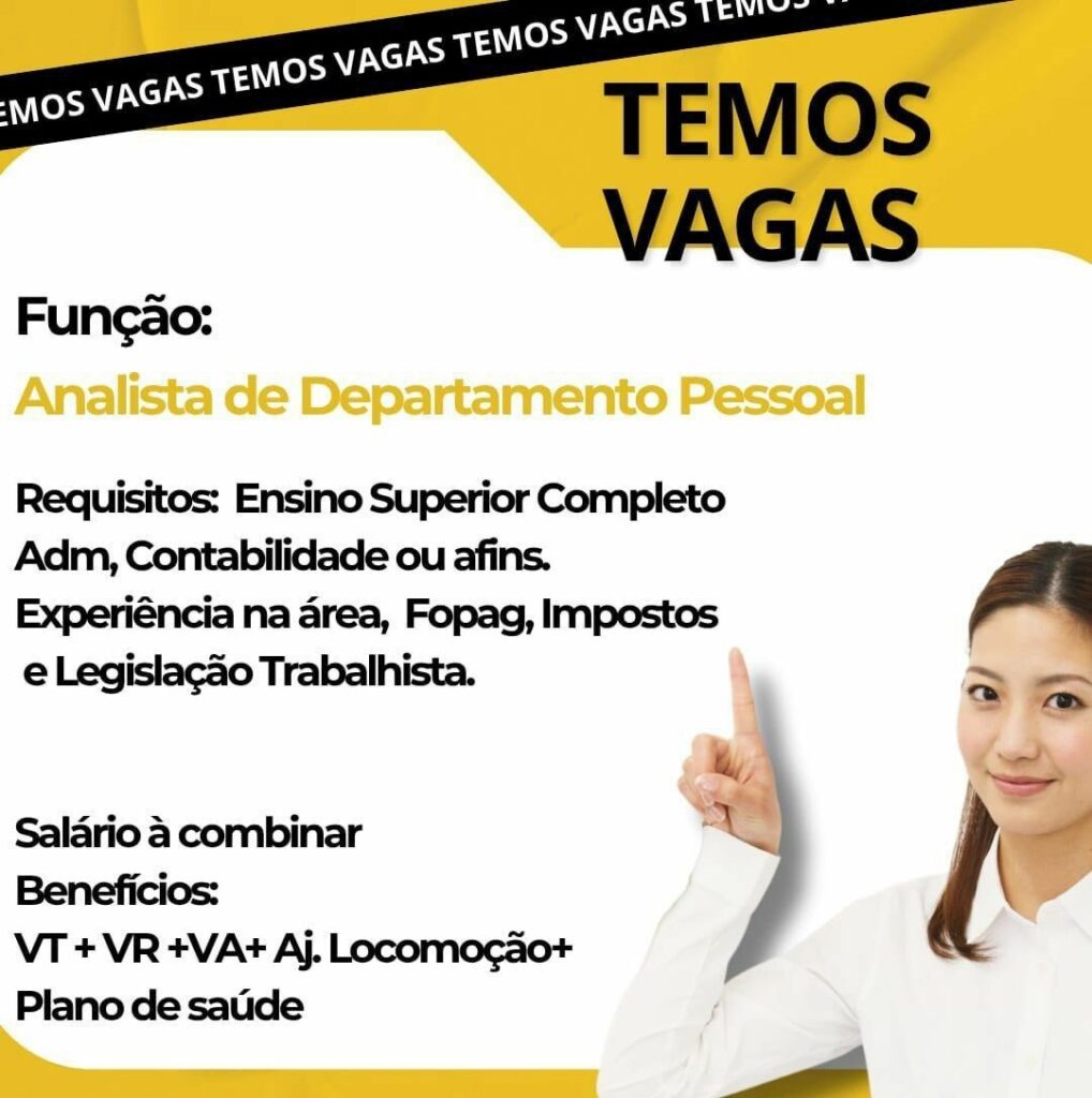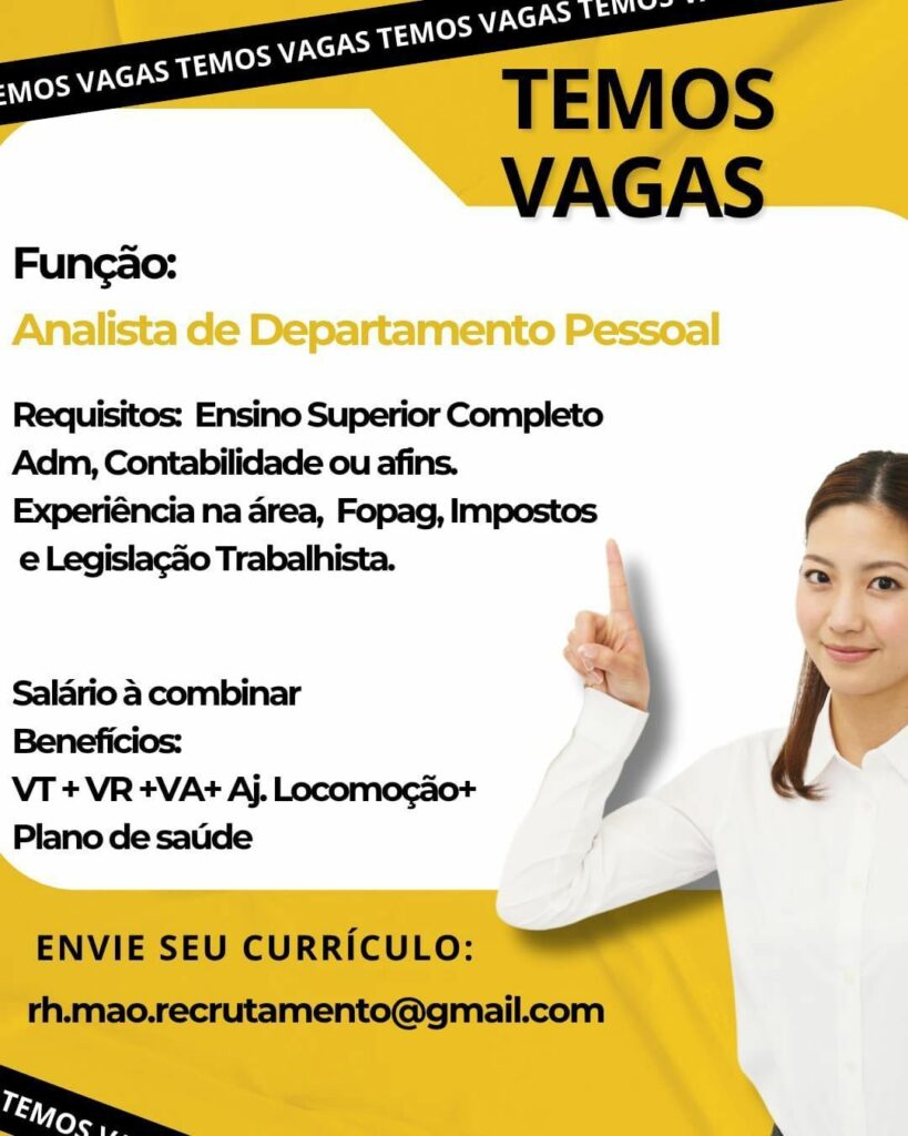 Empresa está selecionando Analista de departamento pessoal; Envie seu currículo!