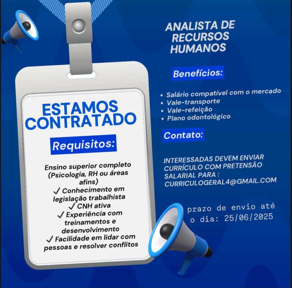Empresa está selecionando Analista de Recursos Humanos; Envie seu currículo!