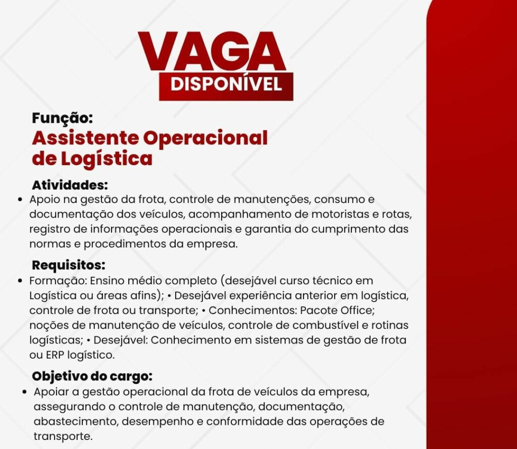 Empresa está selecionando Assistente operacional de logística; Envie seu currículo!