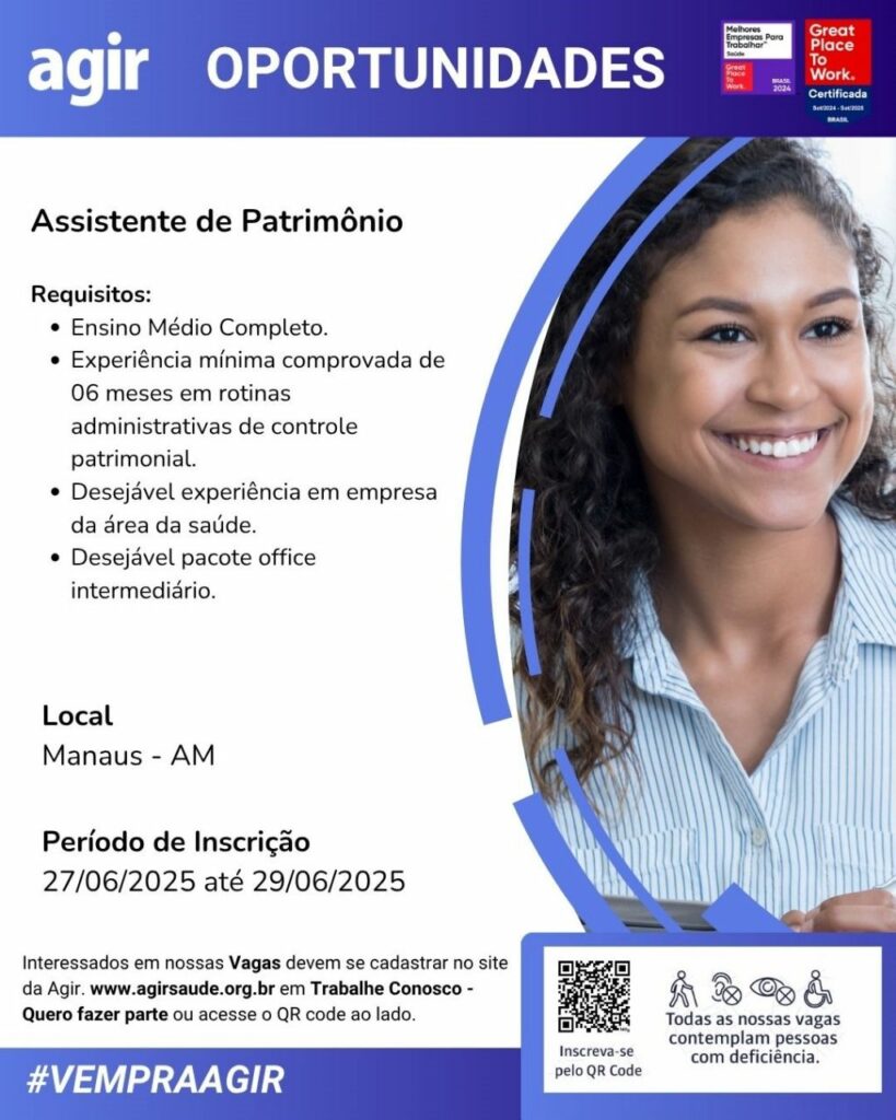 Empresa está selecionando Assistente patrimônio; Envie seu currículo!