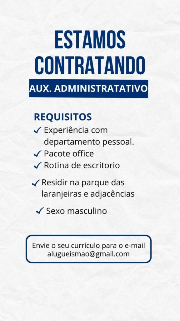 Empresa está selecionando Auxiliar administrativo; Envie seu currículo!