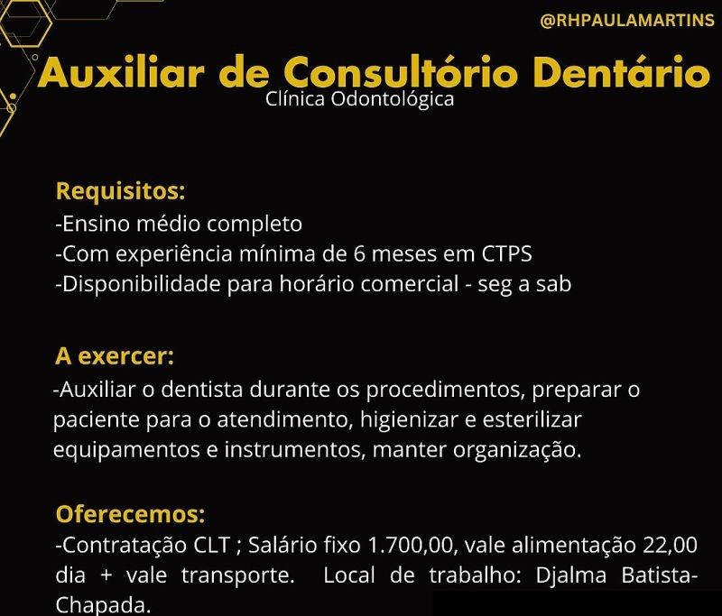 Empresa está selecionando Auxiliar de consultório dentário; Envie seu currículo!
