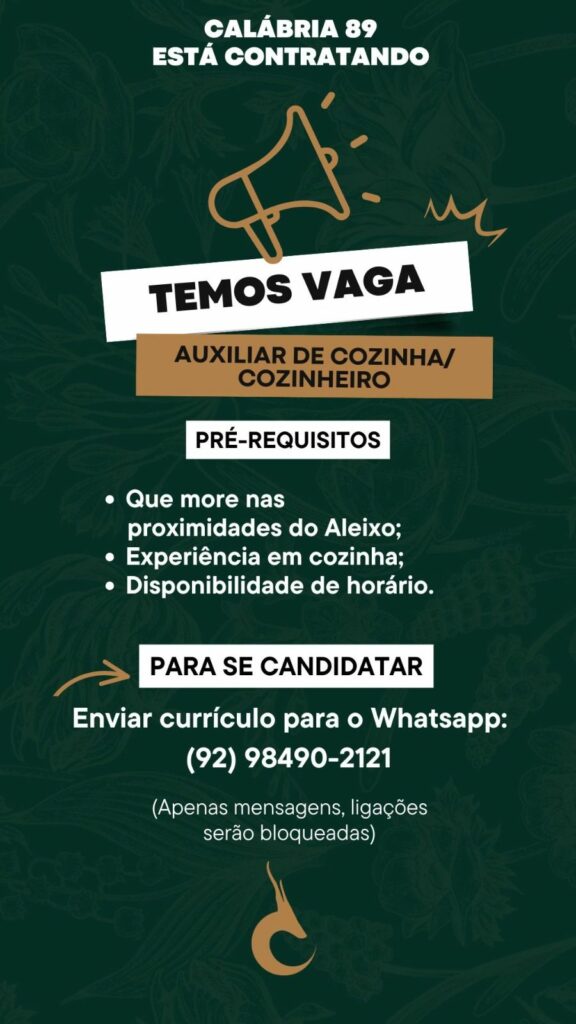 • Hospital Santa Júlia abre vaga para maqueiro em Manaus