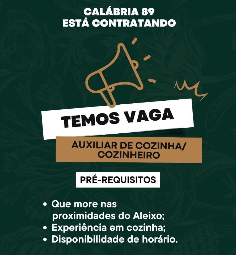 Empresa está selecionando Auxiliar de cozinha / Cozinheiro; Envie seu currículo!