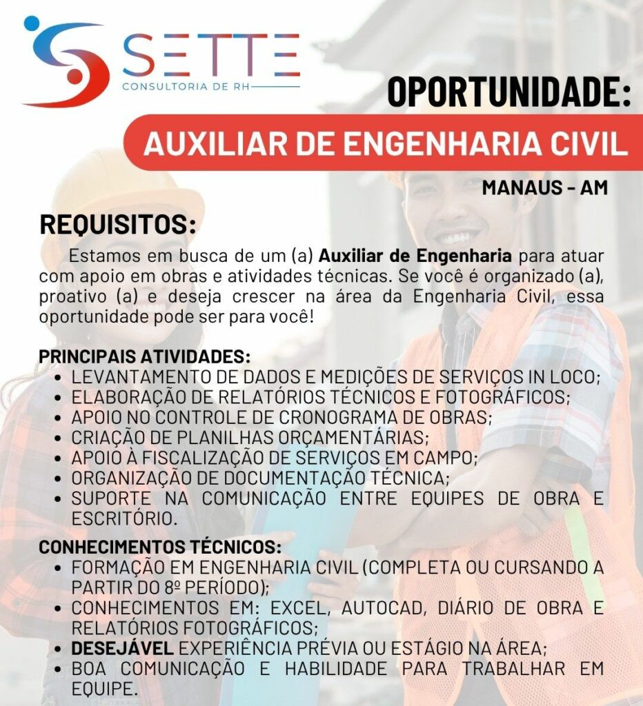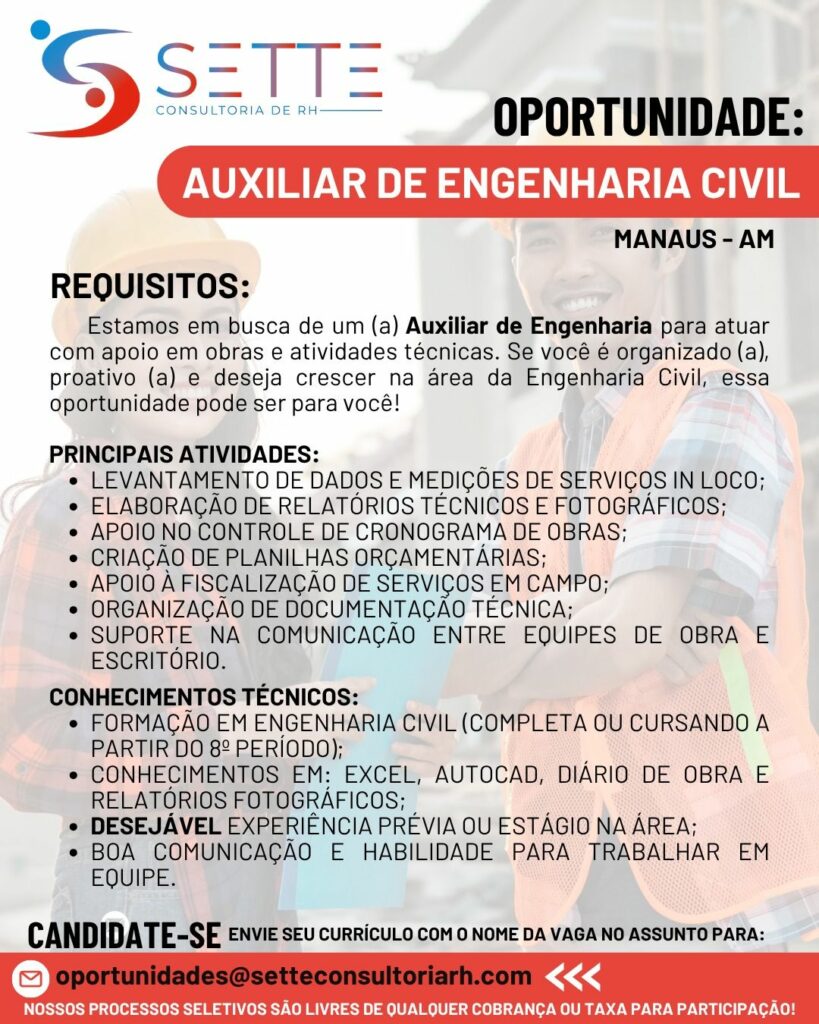 Empresa está selecionando Auxiliar de engenharia civil; Envie seu currículo!