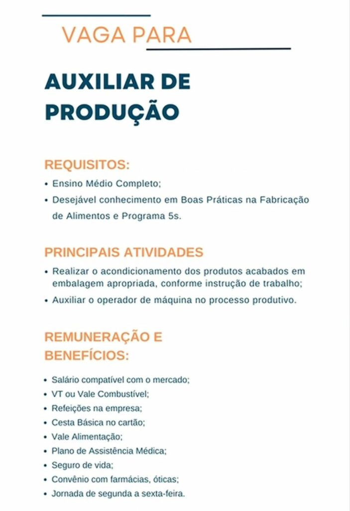 Empresa seleciona Auxiliar de Produção Polo de Duas Rodas