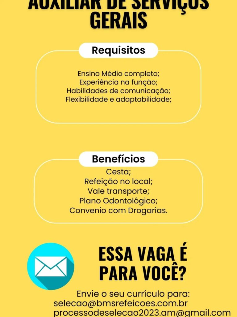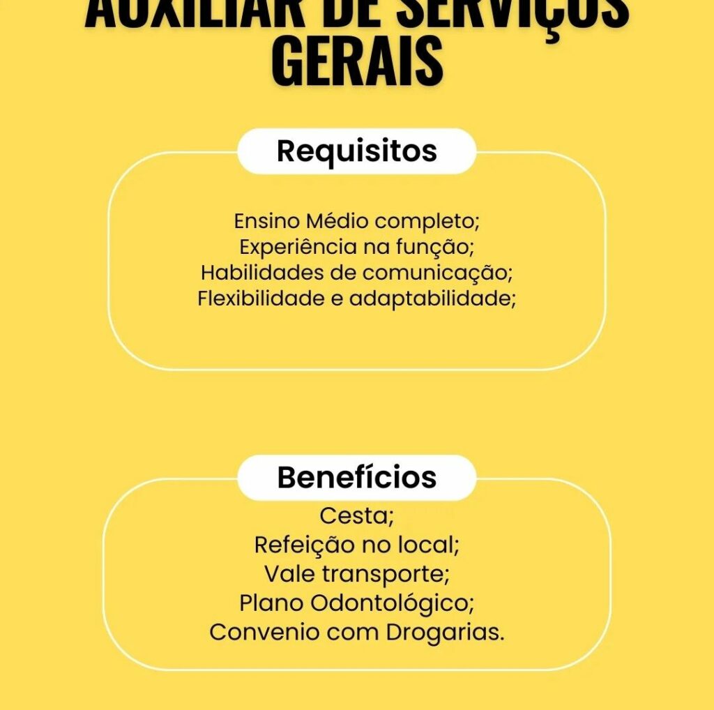 Empresa está selecionando Auxiliar de serviços gerais; Envie seu currículo!