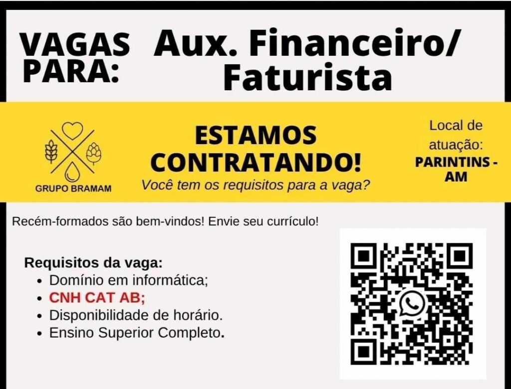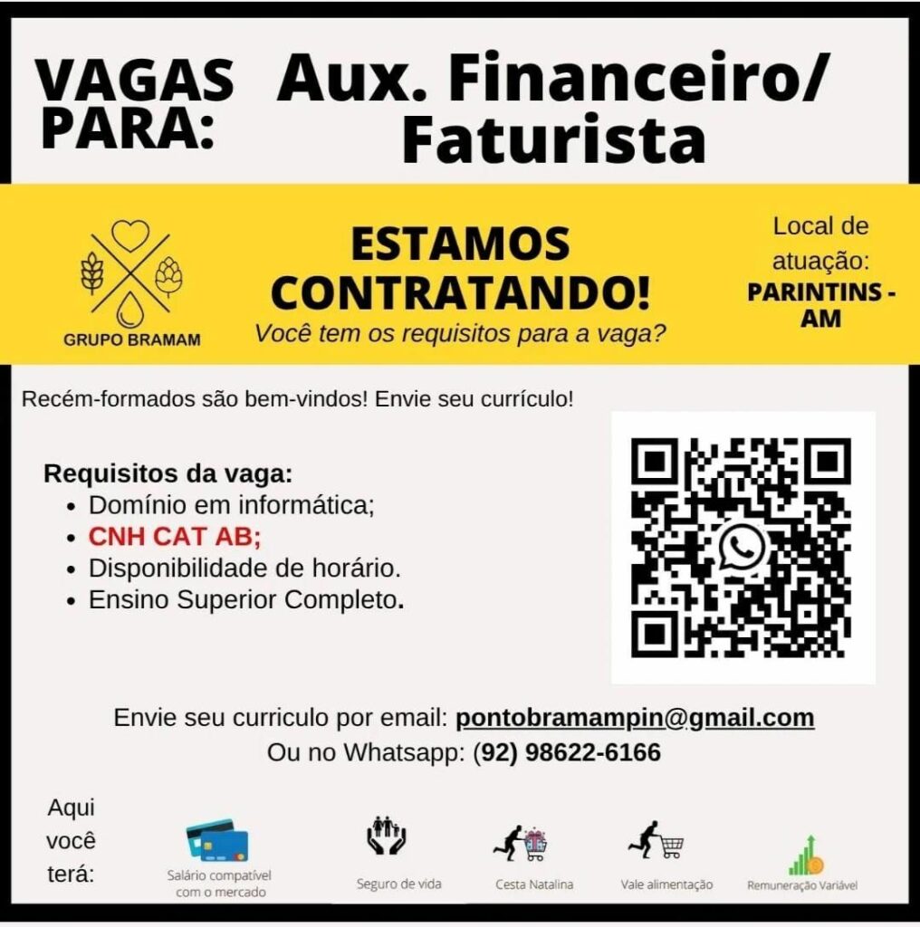 Empresa está selecionando Auxiliar financeiro faturista; Envie seu currículo!