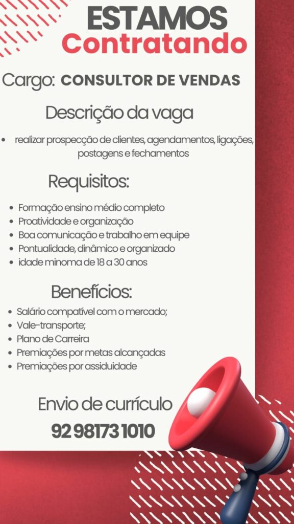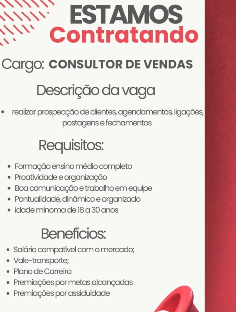 Empresa está selecionando Consultor de vendas; Envie seu currículo!